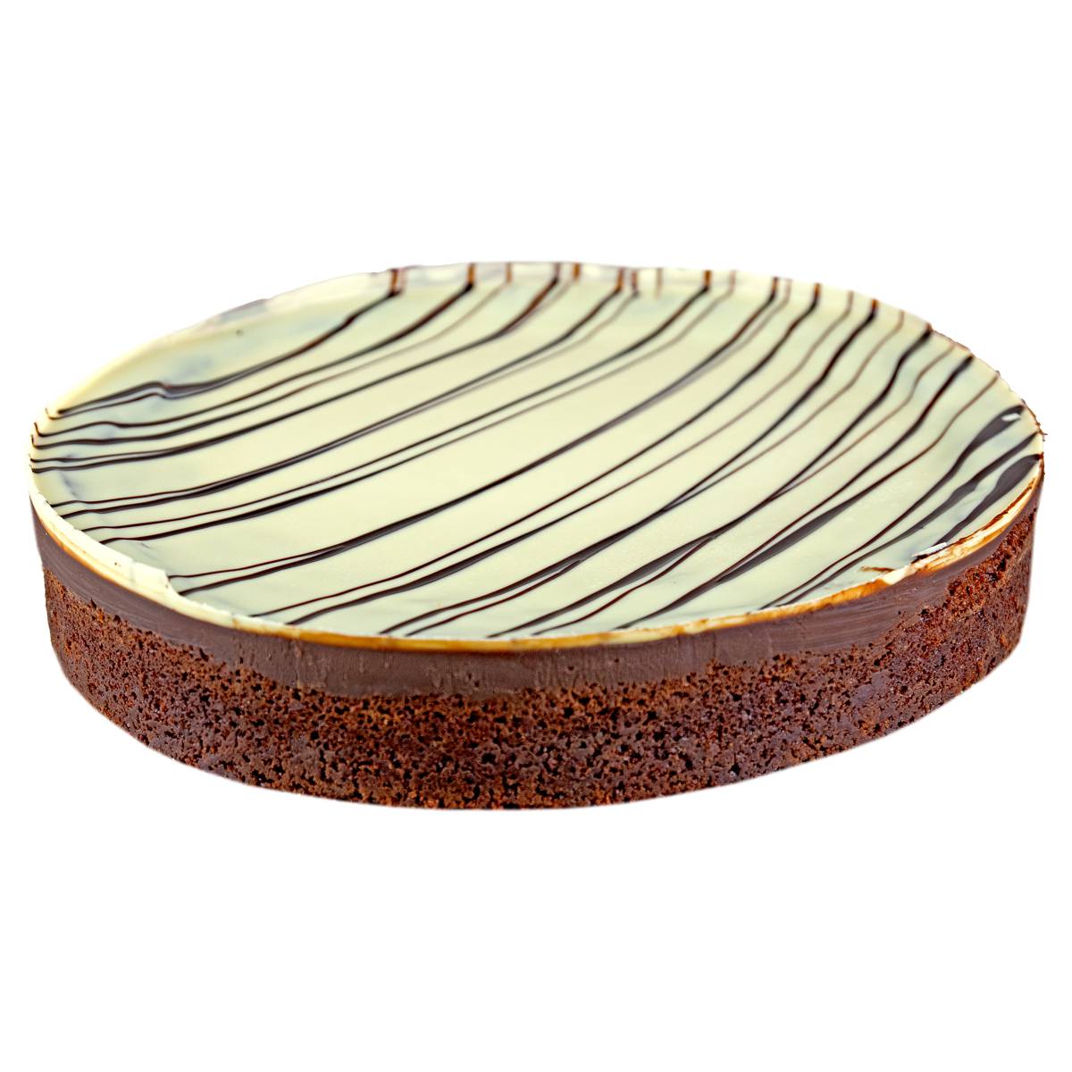 Ø 28cm | 12 Stücke | Zutaten: Frische Sahne 17,I, Blockschokolade A,H,I,J,M, Butter I, Sonnenblumenöl, Ei K, Zucker, Vanillezucker, Backpulver 18, Backkakao 18, Mehl Aa,D,E,M, weiße Schokolade A,H,I,J,M