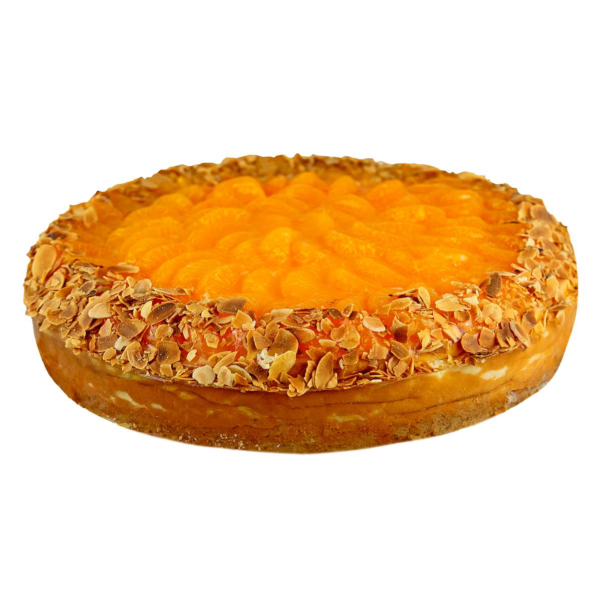 Ø 28cm | 12 Stücke | Zutaten: Butterkeks 18,Aa,I,M, Walnuss Jc, Ei K, Zucker, Frische Sahne 17,I, Zitrone, Vanillezucker, Mehl Aa,D,E,M, Magerquark I, Mandarine, Mandarinensaft, Tortenguss 17,I